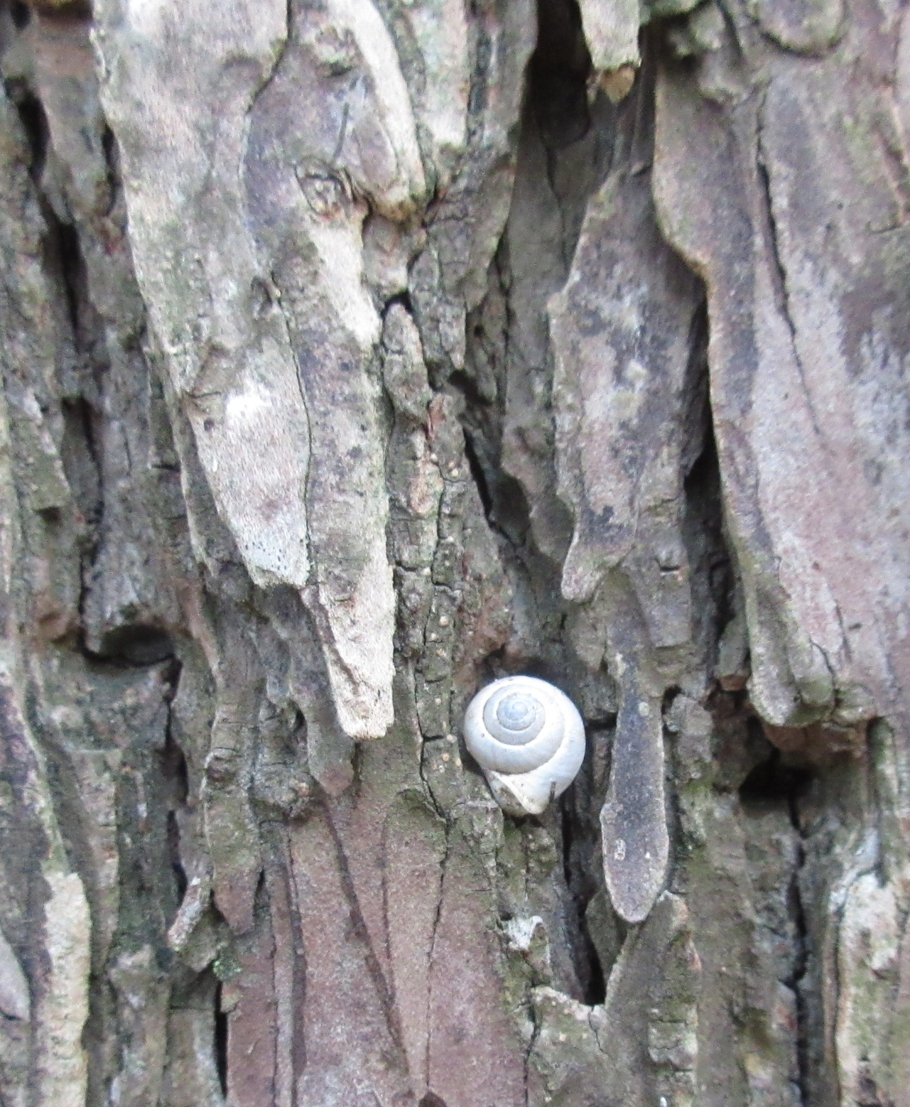 The camouflaged grasshopper was a surprise on the Willow Springs Trail. Tiny treasures decorated trunks, including dainty fungus ruffles around a giant gradually pulling up roots.![]() |